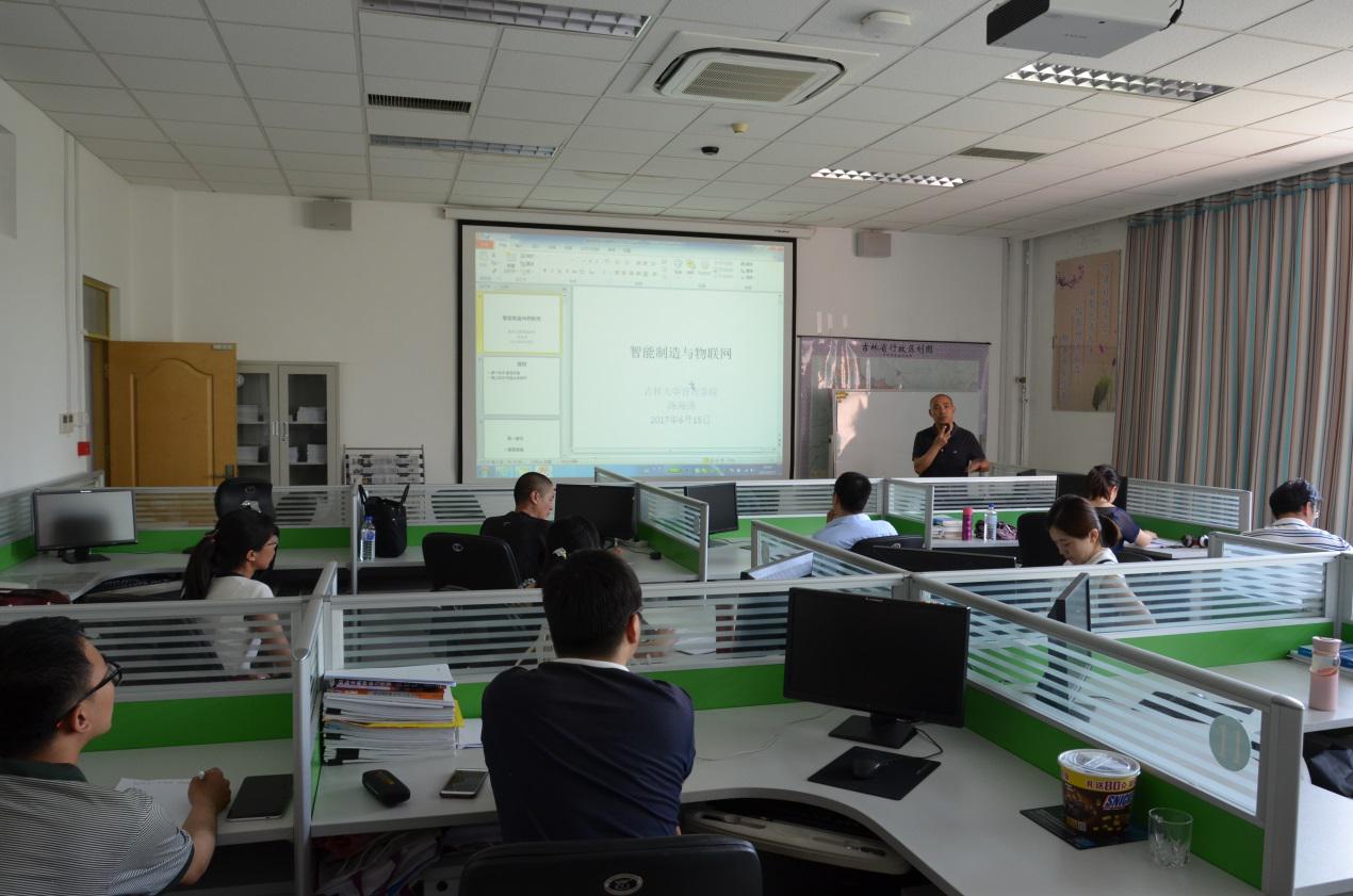 2017年6月15日上午,吉林大学管理学院管理科学与工程系主任、教授、博士生导师陈海涛老师在taptap点点实验楼3428室做题为《智能制造与物联网》学术报告。亚泰工商管理学院和管理科学与信息工程学院的部分师生参加了此次讲座。