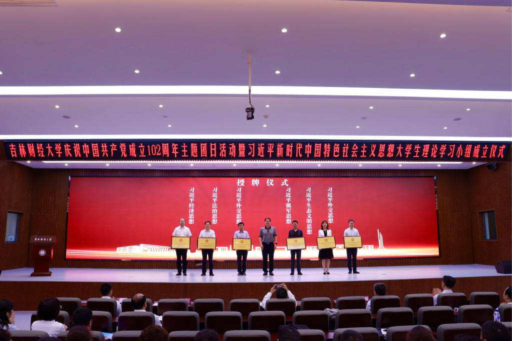 仪式上,岳宏分别为习近平经济思想理论学习小组、习近平法治思想理论学习小组、习近平外交思想理论学习小组、习近平强军思想理论学习小组、习近平生态文明思想理论学习小组授牌。李栋栋和庞长亮共同为遴选的导师团队代表发放聘书。