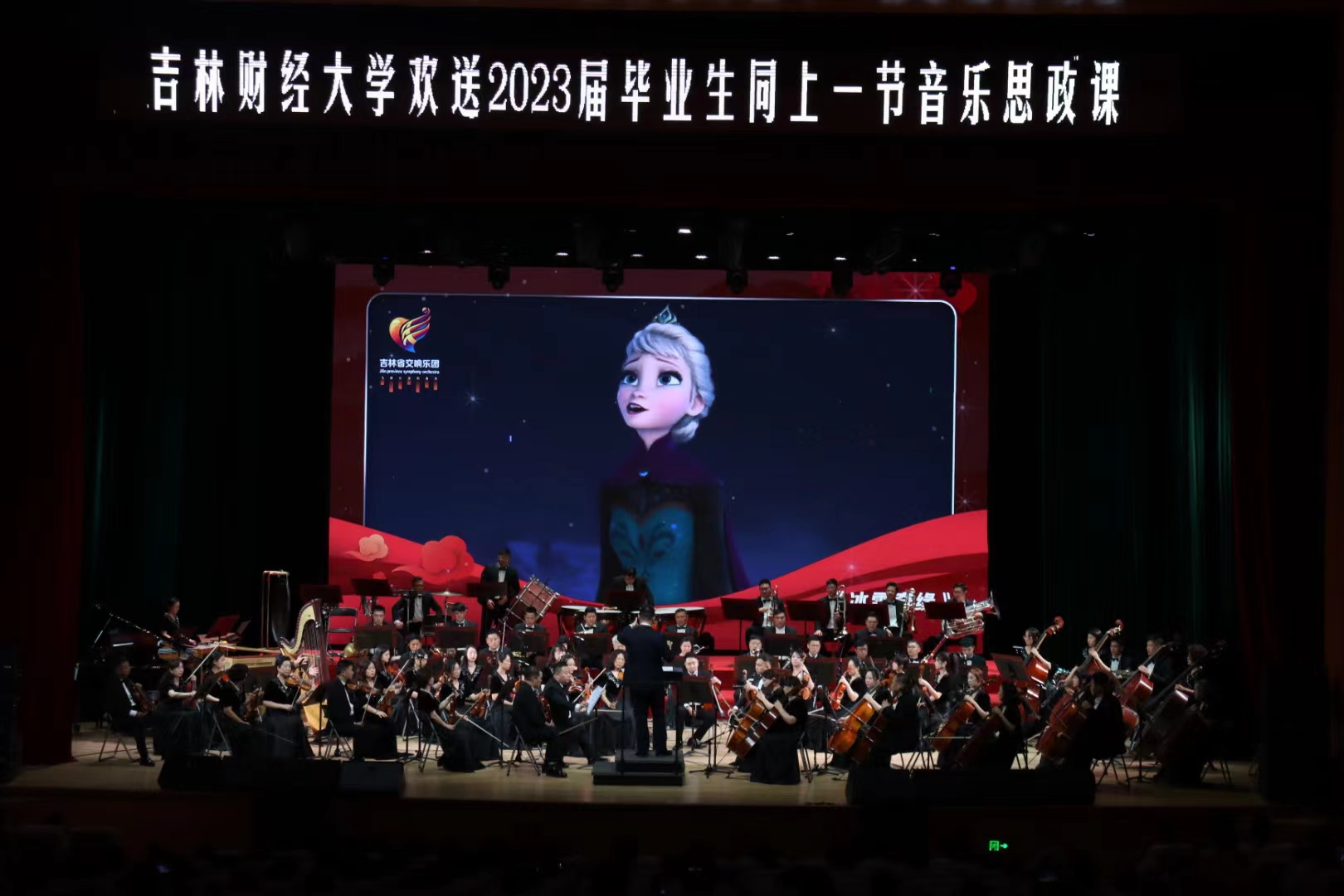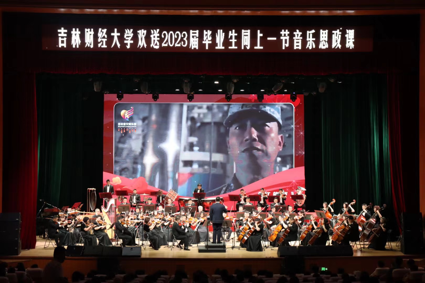 本网讯(校团委 供稿)6月28日,校团委举办的“奋进新时代 启航新征程”欢送2023届毕业生同上一节音乐思政课暨高雅艺术进校园活动,在多功能学术中心顺利进行。校团委邀请吉林省交响乐团携手吉财师生开启了一场美妙的音乐盛宴,也为毕业生奔赴前程,追逐梦想,留下美好回忆。校领导和学校相关职能部门负责人和师生们一起观看了演出。