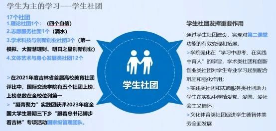 第三:注重学生实践能力的培养。学院倡导以学生为主的学习,充分锻炼学生的能力。学院建有学生社团17个,包括学术类社团和创新创业类社团,实践类社团和志愿服务类社团和文化体育类社团,引领学生成长,实现对第二课堂功能的有效变现和拓展,取得了优异的成果。