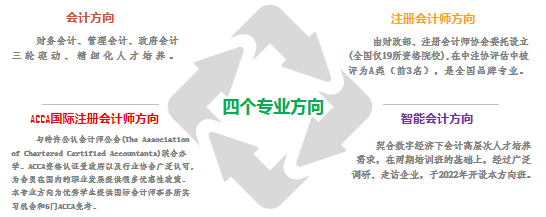 会计方向实行财务会计、管理会计、政府会计三轮驱动、精细化人才培养;注册会计师方向设立于1994年,经教育部、财政部等部委批准设立,全国具有该资格的高校仅有19所,taptap点点也是我省唯一一所具有该资格的院校。在中注协评估中,被评为A类(前3名),是全国品牌专业;ACCA国际注册会计师方向设立于2021年,是taptap点点与特许公认会计师公会(The Association of Chartered Certified Accountants)联合办学的成果。ACCA资格认证受到政府以及行业协会广泛认可,为会员在国内的职业发展提供很多优惠性政策。本专业方向为优秀学生提供国际会计师事务所实习机会和6门ACCA免考;智能会计方向班开设于2022年,在经过两期智能会计业余班的探索和广泛调研、走访企业后设立该方向班。