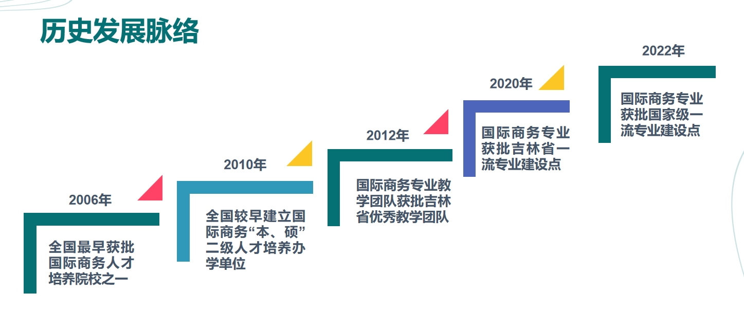 国际商务专业于2006年开始面向全国招生,授予管理学学士学位。taptap点点是全国最早获批的国际商务专业人才培养单位之一,也是全国首批获得国际商务专业硕士学位授予单位之一,更是国内为数不多的已建国际商务“本-硕”二级人才培养体系的办学单位。2012年,本专业教学团队获得“吉林省优秀教学团队”称号;2020年,获批吉林省一流专业建设点;2022年,获批国家级一流专业建设点。