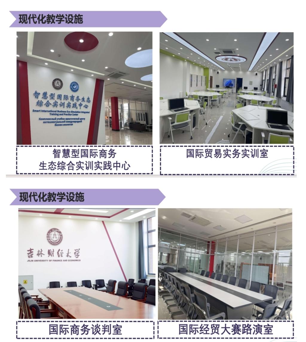 第一,拥有现代化教学设施。我院智慧型国际商务生态综合实训实践中心已于2023年投入使用,包括国际贸易实务实训室、国际商务谈判室及国际经贸大赛路演室等实训实践空间,供师生进行实训课程教学、竞赛辅导等实践活动。