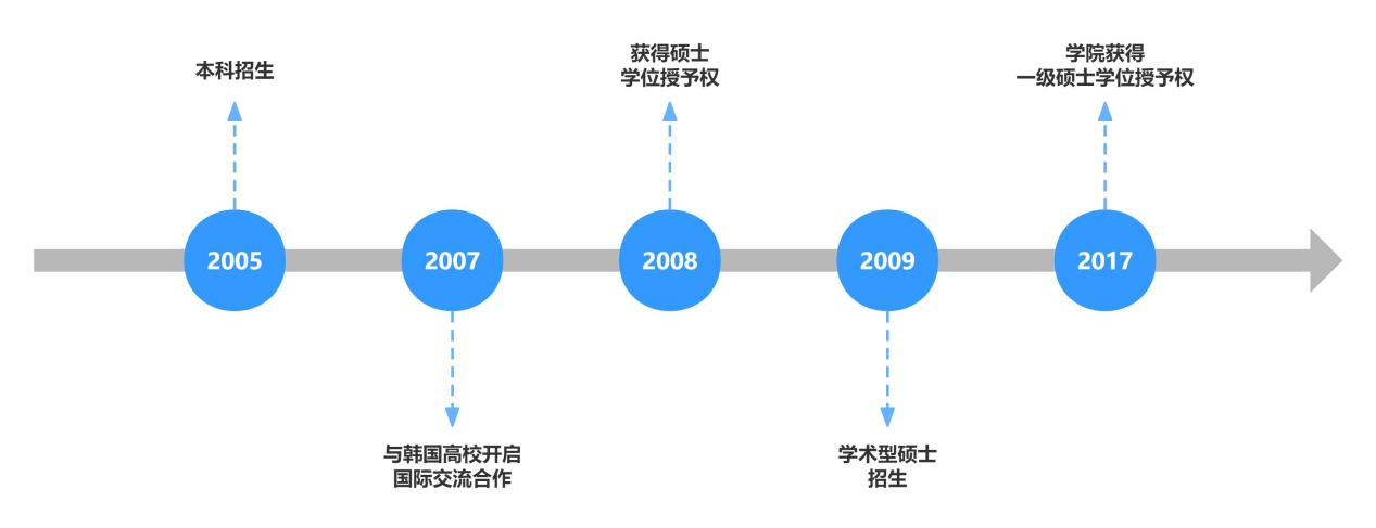 朝鲜语专业(经贸方向)是学校为满足国家与地区战略与发展需求,继外国语学院日语专业与英语专业成立后,于2005年设立的。2007年以来,与韩国多所高校开启多维度国际交流合作项目(交换学生、教师交流与学术交流等),2008年获得硕士学位授予权,2009年开始招收学术型硕士,2017年学院获得一级硕士学位授予权。
