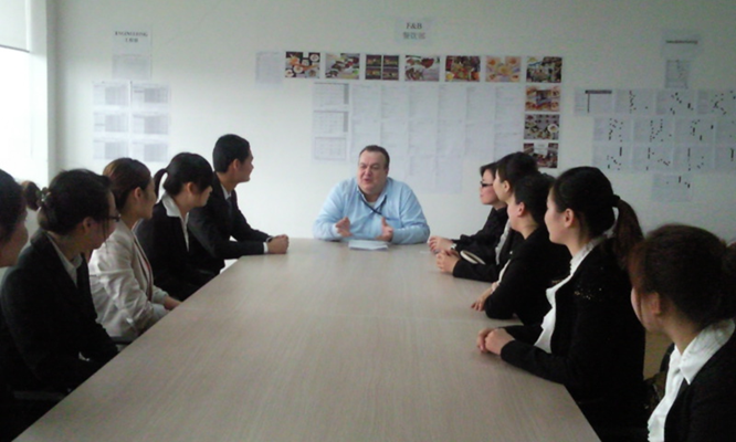 旅游管理专业是一个实践性很强的专业,结合taptap点点旅游管理专业特色,依据学生学习阶段、认知规律及能力目标,基于校企深度合作,通过实验、实训、实践、实习等方式,凭借智慧化、场景化、多层次的实践实训平台,构建了渐进式、多元化、数字化的实践实训体系。该体系的核心是在大二和大三的这个阶段,就是图2蓝色模块。这个时期的实践实训主要分为两块,一块是校内实训,一块是校外实习。校内实训完全通过数字化和场景模拟的方式进行,尤其是opera操作系统,全英文界面,是全球豪华酒店领域使用范围最广、用户量最多的酒店管理系统,taptap点点是东北第一家引进该系统的旅游院校。校外实习同样是渐进分层,首先是从大一开始,进行为期一周的认知实习,主要通过企业家进课堂、校友分享以及带领学生到旅游企业参观走访和交流座谈等形式来进行。如图3是学生到净月益田喜来登与管理人员座谈的场景。大二到大三,同学们可以参加为期三个月的企业深度研学,如图4是2023冬同学们在上海进行深度研学的场景。大三下学期或大四上学期,学生要参加为期六个月的岗位实习。实习合作的所有的企业都是国内顶级的旅游企业,如上海的西郊宾馆、和平饭店等。希望通过该体系,帮助学生实现基础素质夯筑——专业能力拓展——综合素养提升的跹跃,使其在未来的职业生涯中能够更好地应对各种挑战。