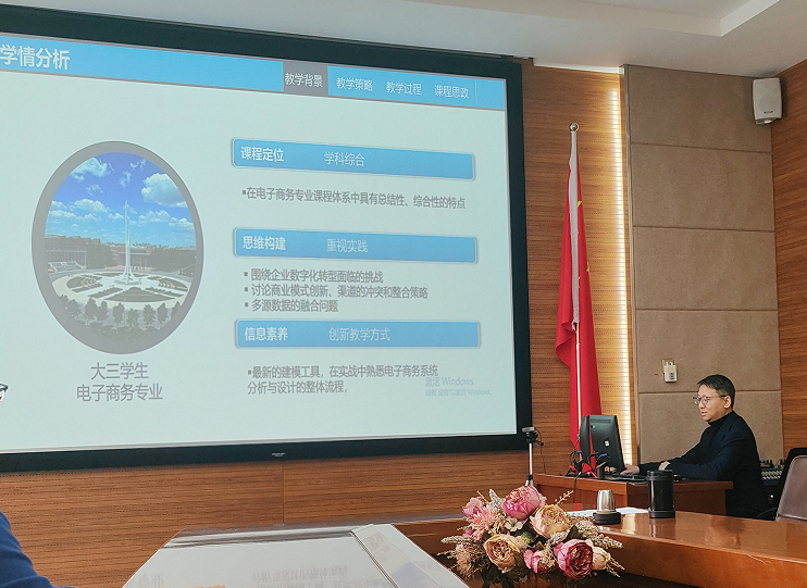 “说课程”围绕课程设置与人才培养目标的支持度、在培养方案课程体系中的定位、对人才培养的支撑作用以及其他课程的关系等展开,各课程组负责人通过PPT汇报,就课程目标、教学设计思路、教学内容、课程思政建设、教学方法与手段、课程考核评价方式等方面对课程进行详细介绍。学院教学督导组负责人郭淑馨老师对部分课程的教学方法创新及教学中存在的问题提出了建设性意见,参会教师围绕课程内容、教学设计等方面集思广益,深入交流,提供可参考的建议。