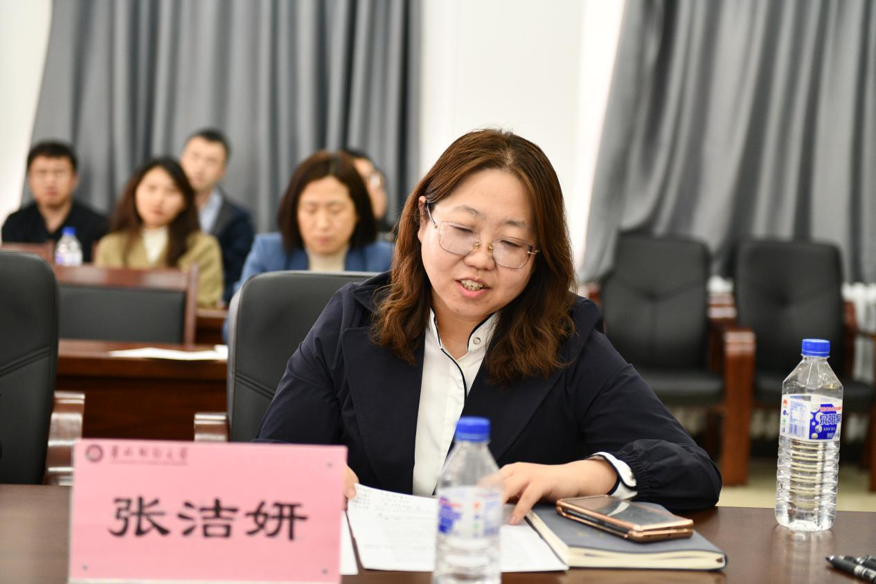 最后,王丽颖院长对本次比赛进行了总结。她高度评价了本次说课活动中各位老师的精彩展现,提出本次比赛既是对学校开展的“话专业、说课程”系列活动的有效落实,也是全体老师对所讲课程的全面总结和反思。全院教师要以此次说课程比赛为契机,进一步深化教学改革和课程建设,遵循一流课程的建设标准,优化专业课程体系建设,提升教师教学水平,促进课程建设高质量发展,全力提升新金融人才培养质量。