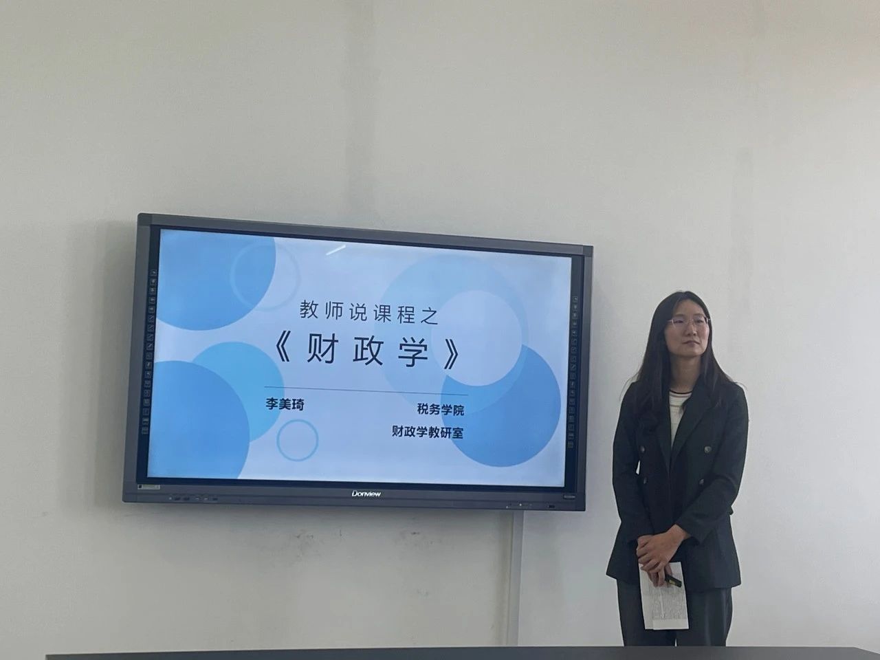 首先,由财政系李美琦老师、税收制度系邢树东教授、国际税收系安然老师以及税务管理系曹阳副教授分别对《财政学》、《税收经济学》、《英美税制》以及《税务管理》等四门专业必修课程,围绕课程目标、课程建设、课程内容、课程思政、教材选取及授课方法等内容进行说课展示。接下来,学院教师结合四位老师的说课内容展开热烈的讨论,不仅对本次参与展示的课程提出了建设性建议,也覆盖了课程体系的优化、教师专业能力提升等方面内容。最后,张巍院长对四位专业教师的精彩说课表示赞赏,邢教授充分展示了深厚的教学功底,三位青年教师的成长进步也让她对税务学院专业课程教学能力的提升充满信心。陈德民书记进一步结合师德师风建设,期许税务学院打造一支政治素质过硬、业务能力精湛和育人水平高超的优秀教师队伍。