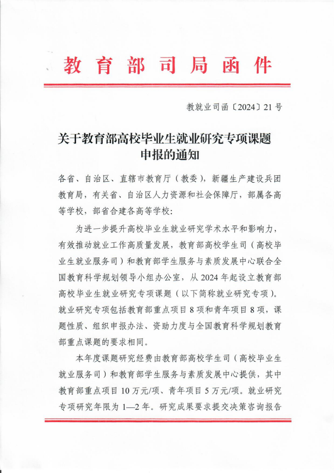 快讯!教育部高校毕业生就业研究专项课题申报通知